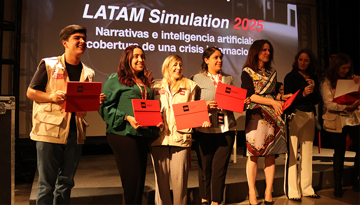 Durante LATAM Simulation 2025: Narrativas e inteligencia artificial. Cobertura de una crisis internacional, las y los participantes enfrentaron retos en tiempo real del periodismo internacional: coberturas de crisis, decisiones editoriales bajo presión y dilemas éticos en escenarios de conflicto y desinformación. La simulación permitió experimentar lo que implica trabajar en una redacción global, donde cada palabra cuenta y cada decisión tiene consecuencias.